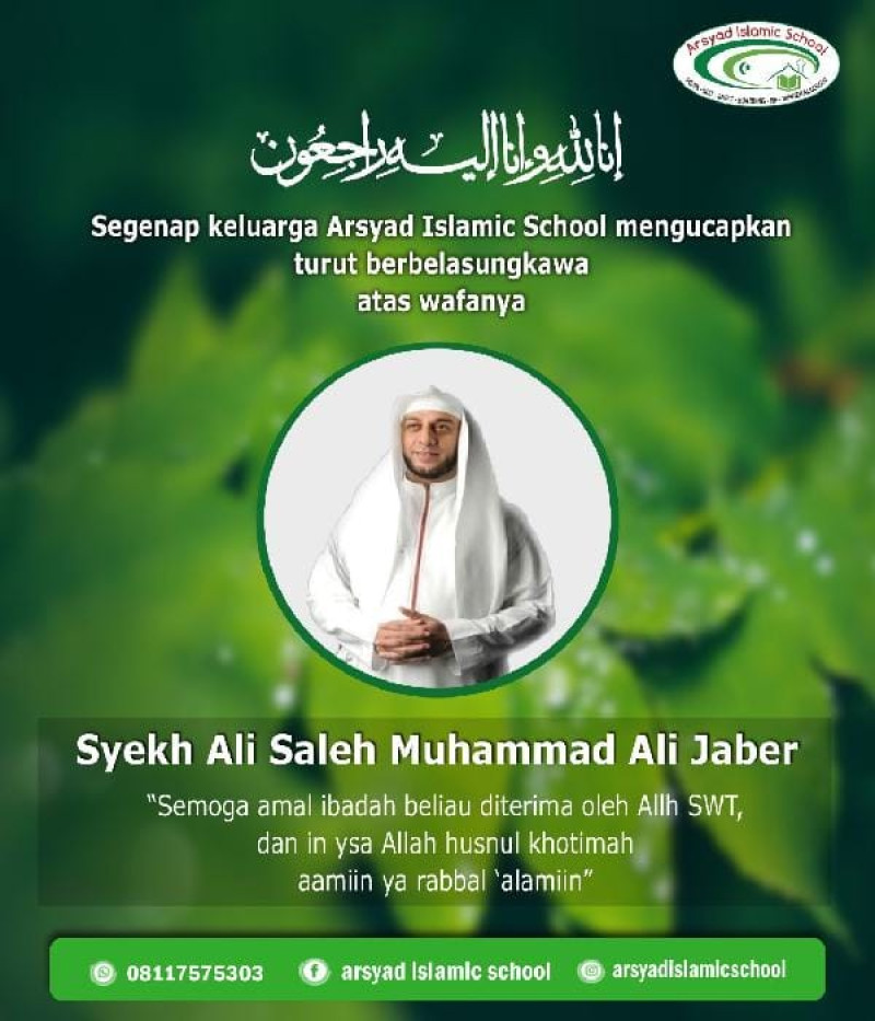 Keluarga Besar Arsyad Islamic School Turut Berduka Atas Meninggalnya Ulama dan Da'i Umat Islam Syeikh Saleh Muhammad Ali Jaber.