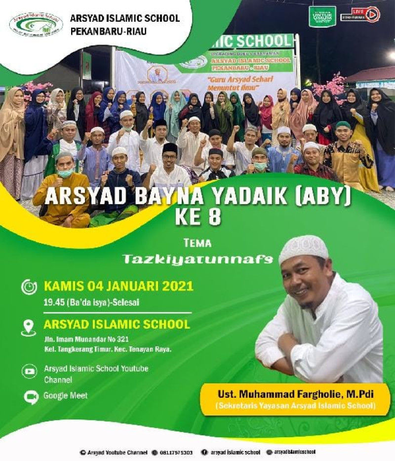 Kajian Virtual Islami yang disebut dengan ARSYAD BAINA YADAIK, yang kali ini diisi oleh Ust. MUHAMMAD FARGHOLIE dengan mengangkat tema Tazkiyatunnafs..