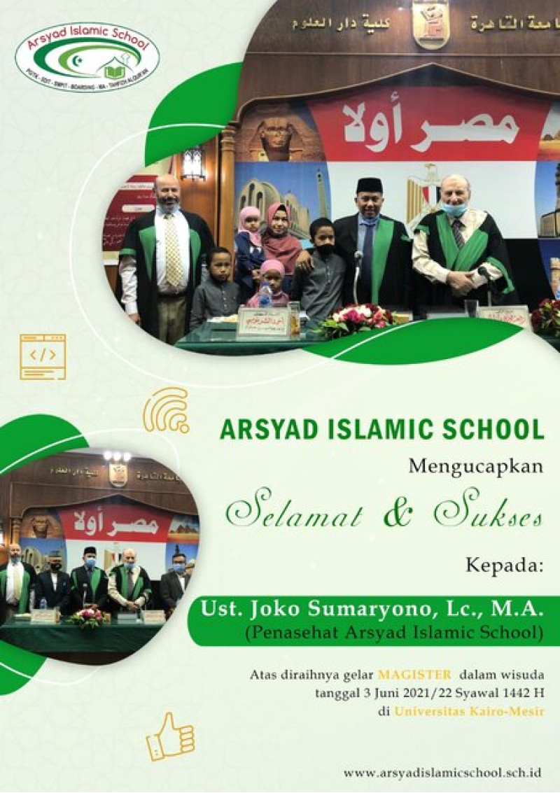 Ucapan untuk Penasehat Arsyad Islamic School Ust. Joko Sumaryono, Lc., M.A atas Gelar Baru