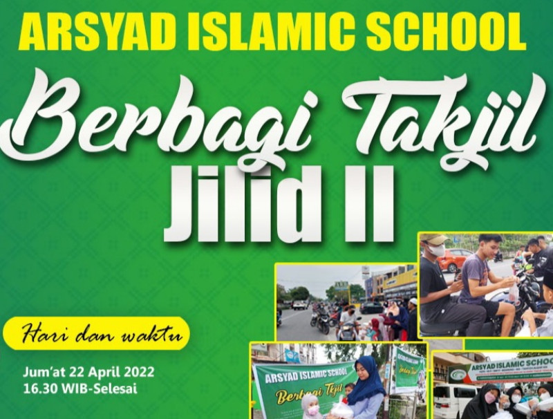 Setelah berhasil dalam menyiarkan sikap berbagi dan peduli terhadap sesama melalui Berbagi Ta'jil jilid 1, kini Arsyad Islamic School kembali mengadakan Berbagi Ta'jil jilid 2 yang langsung dibagikan oleh student Arsyad Islamic School dari tingkatan TK s.d MA.