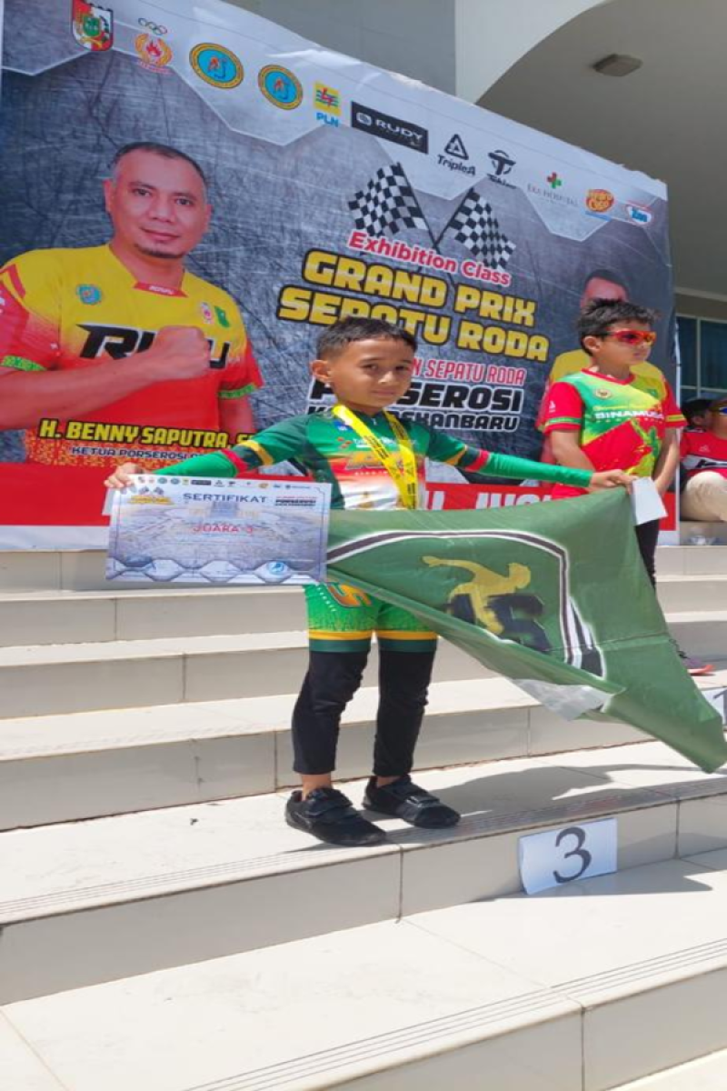 Alhamdulillah, melalui Turnamen Grand Prix Sepatu Roda yang dilaksanakan oleh Perserosi Kota Pekanbaru pada tanggal 28 s.d 29 Mei kemarin, ananda Dhafin berhasil memperoleh 2 medali dalam 2 kategori, yakni: Perak dalam KU B 1000 Meter dan Perunggu pada KU B 500 Meter.