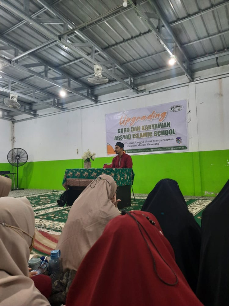 Rabu, 06 Juli 2022------UPGRADING hari kedua telah dilaksanakan di Sekolah Arsyad Islamic School dengan tema “Menjadi Pendidik Unggul untuk Mempersiapkan Generasi Muslim Gemilang”. Upgrading ini tentunya dilakukan untuk meningkatkan mutu dan kompetensi para guru dan karyawan. Kegiatan hari ini diawali dengan santapan tausiyah yang disampaikan oleh Ustad Khairuddin Ahmad Jais, Lc.