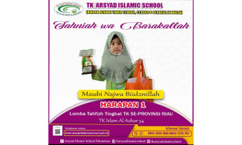 Tidak bosan, kabar gembira dan membanggakan lagi-lagi datang dari peserta lomba tahfidz dari student Arsyad Islamic School.Kali ini, Ananda Maubi Najwa Biidznillah, berhasil menyandang pemenang harapan 1 pada lomba Tahfidz Juz 30 Tingkat TK Se-Provinsi Riau. Lomba sendiri di adakan...