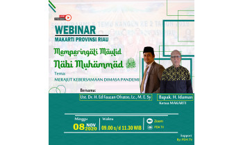WEBINAR MAKARTI PROVINSI RIAU🎗MEMPERINGATI MAULID NABI MUHAMMAD SAW🎗(Live Streaming)✍️Tema: Merajut Kebersamaan Dimasa Pandemi👳🏻Tausiyah Ustadz :Dr. H. Ed Fauzan Ofratos, Lc, M. E. Sy🗓 Hari Ahad, 8 November 2020⏰ Pukul : 09.00 s/d 11.30 WIB📃Tertib Acara:I. - Pembukaan oleh MC - Pembacaan...
