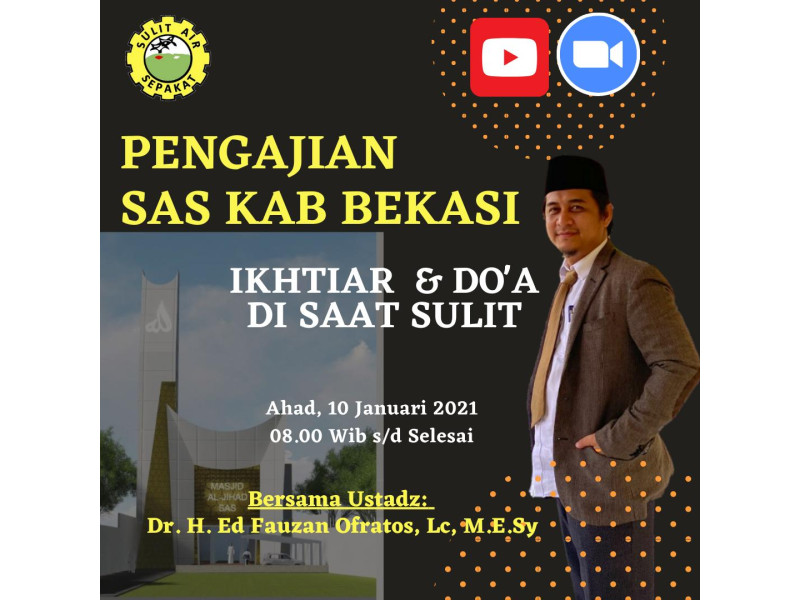 In Sya Allah pada Ahad Tanggal 10 Januari 2021, Pukul 08.00 s/d Selesai akan diadakannya Pengajian Oleh SAS kabupaten bekasi melalui Virtual Zoom dan live pada Youtube PDA Travel.Dan In Sya Allah kajian Awal Tahun ini akan diisi Oleh Ust....